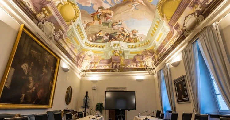 Palazzo Trentini ist heute Sitz des Rates der Autonomen Provinz Trient, mit dem Präsidium und allen Ämtern der Körperschaft. Der Saal der Morgenröte, in dem einige Veranstaltungen des Festivals stattfinden werden, gilt als das prestigeträchtigste Ambiente des Palastes. Es dominiert ein großes Gewölbe, das mit gefälschten Architekturen verziert und um 1750 mit dem Triumph der Aurora, einer Allegorie des Aufstiegs der Familie Trentini, von einem ausgezeichneten venezianischen Schulkünstler, dessen Identität von Gelehrten immer noch diskutiert wird, bemalt wurde.